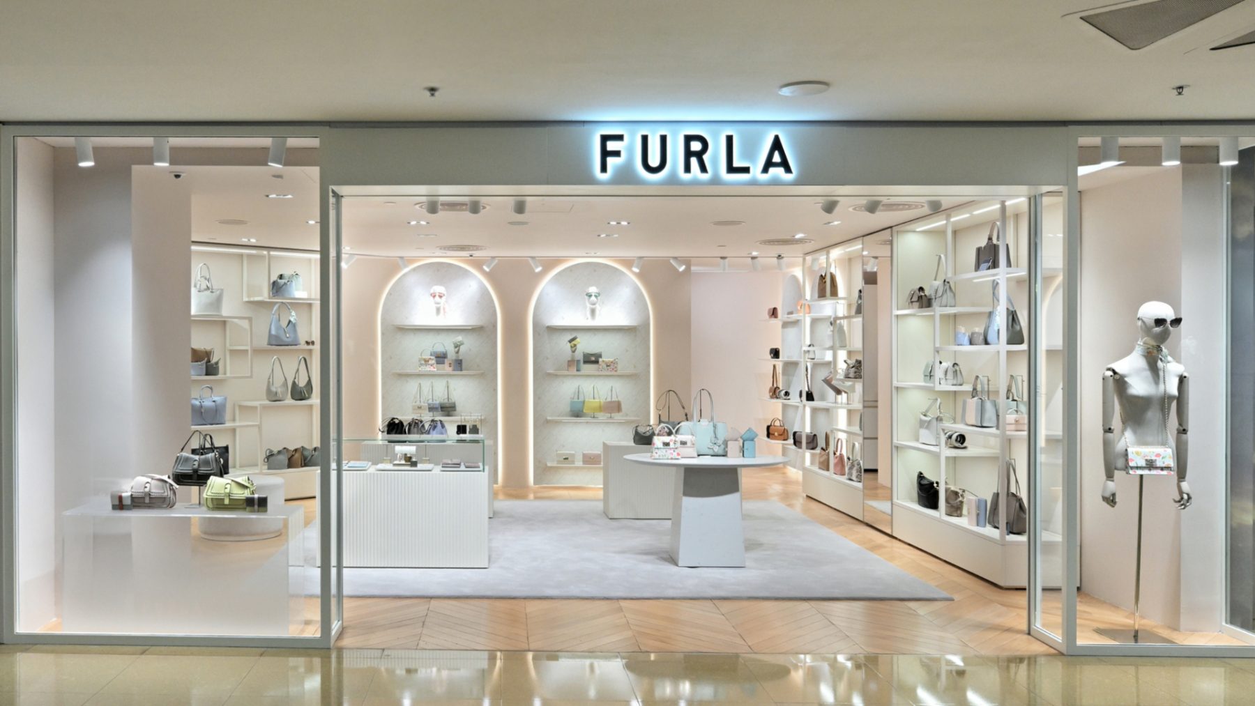 - 特色: 柔和色彩、優質材料與精心佈置的空間,讓顧客感受Furla標誌性的精緻美學。